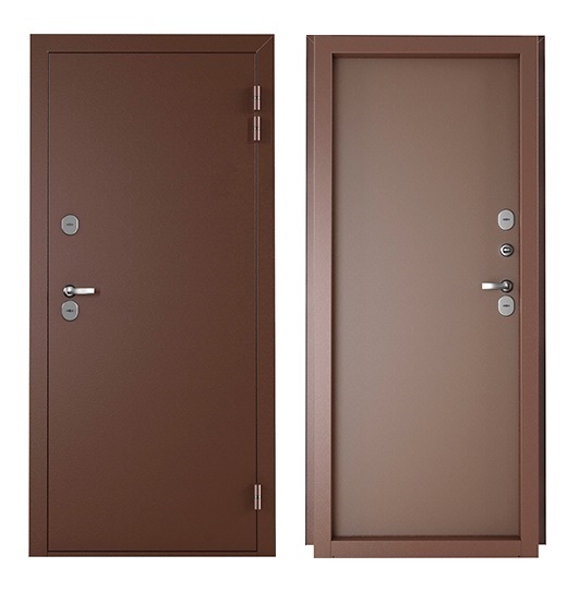 Дверь металлическая Норд металл/металл серии "Терморазрыв" оптимальное решение для установки в местах, подвергающихся воздействию природных температур. Данная конструкция двери надежно предотвращает промерзание двери при температуре на улице до минус 30 С. Дверь с терморазрывом имеет в районе притвора уникальную 2х камерную конструкцию, состоящую из холодной и теплой зон, которые разграничены между собой двойным слоем уплотнителя, пластиковым элементом в полотне и перфорацией в коробе. Дверь Норд комплектуется двумя сувальдными замками Промет 30.11 и Промет 30.01 четвертого класса взломостойкости, а также алюминиевой дверной ручкой Inspector 93 в цвете хром. Размеры наружные (ВхШхГ) 2104х1089х130 мм, Размеры светового проема (ВхШ) 1913х788 мм, Монтажные размеры короба (ВхШ) 2050х980 мм, Глубина (толщина короба, мм) 130, Толщина полотна 87 мм, 4 контура уплотнения (3 шлегель Q-Ion и 1 Е-образный), Сувальдный замок Промет 30.11, Сувальдный замок Промет 30.01, Ночная задвижка, 3 петли на подшипнике, Наполнение двери - пенополистирол высокой плотности. Применение пенополистирола в качестве внутреннего наполнителя, обеспечивает низкую теплопроводность и высокую звуконепроницаемость. Дверь Норд покрыта износостойкой полимерно-порошковой краской. Цвет внешней и внутренней стороны - антик медный