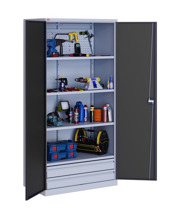 Инструментальный шкаф ИП-1/3 односекционный предназначен для хранения инструментов, слесарных приспособлений и других изделий на предприятиях, в мастерских, гаражах, подсобных помещениях. Представляет собой сборно-разборную металлическую конструкцию, собираемую при помощью саморезов.