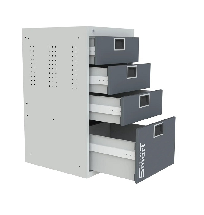 В комплектацию верстака входит: столешница 1280 SMART, полка/стенка 625 SMART, тумба SMART 4, опора SMART, один перфорированный экран SMART. Столешница выполнена из фанеры 27 мм со стальной окрашенной накладкой 1,2 мм. Опора сварная выполненная с применением высокоточного сварочного оборудования. Имеет нижнюю перекладину для усиления устойчивости конструкции. Размер опоры (ВхШхГ): 835х500х135 мм. Тумба SMART-4 комплектуется 4 выдвижными ящиками. Выдвижные ящики оборудованы телескопической системой полного выдвижения ящиков с фиксацией в закрытом состоянии (50000 циклов). Все ящики закрываются центральным ключевым замком. Секретность замка 2000 комбинаций (2 ключа в комплекте). Перфорированный экран SMART имеет универсальную перфорацию (квадрат 10 мм c шагом 38х38 мм и круг 7 мм с шагом 25х38 мм) для размещения различного типа крючков и держателей инструмента. Цвет верстака: опора, корпус тумбы - серый Ral 7035, столешница, полка/стенка, лицевая панель тумбы - графит Ral 7016. Поставляется в разобранном виде.