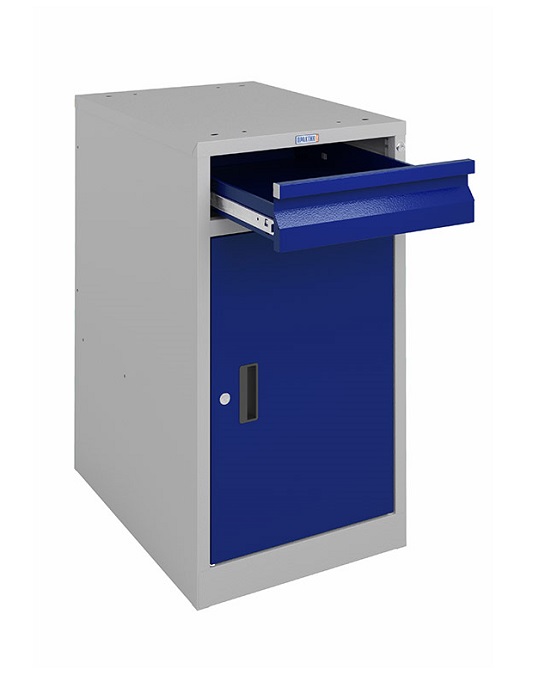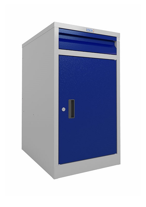 Тумба Profi WD-2 предназначена для хранения вещей, инструментов и оснастки в производственных помещениях, гаражах, мастерских. Изготовлена из высококачественного металла. Комплектуется: выдвижным ящиком с телескопическими направляющими и съемной регулируемой по высоте полкой (шаг 80 мм). Полезный размер ящика (ВхШхГ): 100х380х600 мм. Тумба Profi WD-2 закрывается двумя ключевыми замками Практик (1000 комбинаций). Выдерживает максимальную нагрузку на ящик/полку 30 кг. Цвет: корпус - серый Ral 7038, дверь и лицевая панель ящика - синий Ral 5002